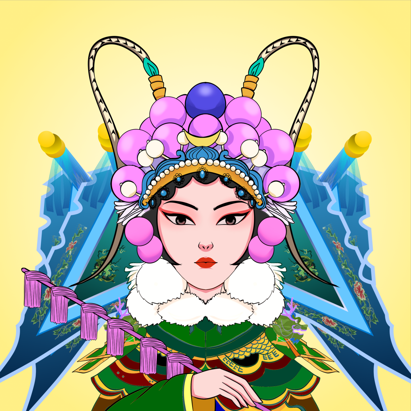 刀马旦是要能唱、能念、能做、能打的,多是扮演穿蟒扎靠,戴翎子的女将。如《樊江关》中的樊梨花。《打焦赞》中的杨排风、穆桂英.