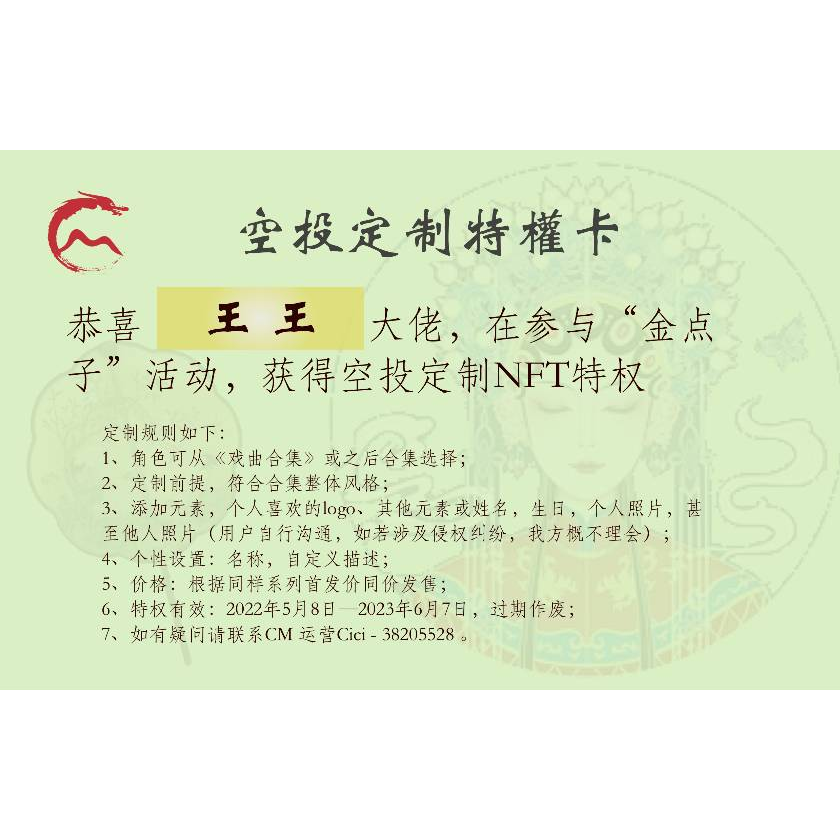 购买者请与CM运营联系定制NFT,定制规则请看图
