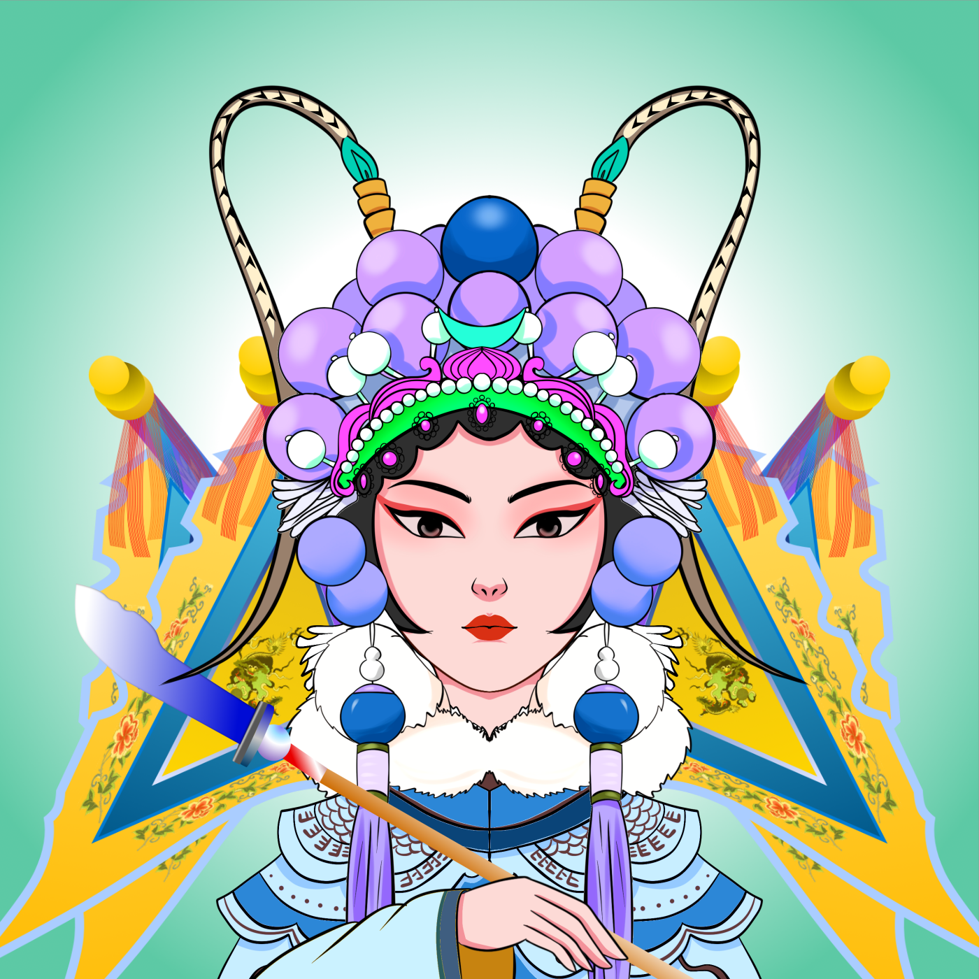 刀马旦是要能唱、能念、能做、能打的,多是扮演穿蟒扎靠,戴翎子的女将。如《樊江关》中的樊梨花。《打焦赞》中的杨排风、穆桂英.